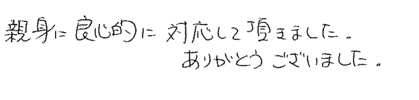 親身に良心的に対応して頂きました。ありがとうございました。