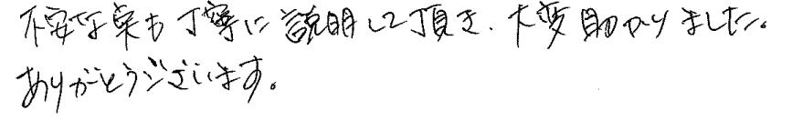 不安な点も丁寧に説明して頂き、大変助かりました。